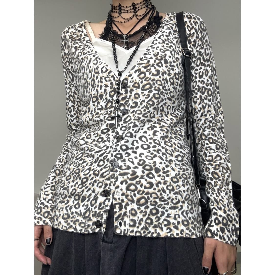 빈티지 레오바드 가죽 깃털 테슬 목걸이