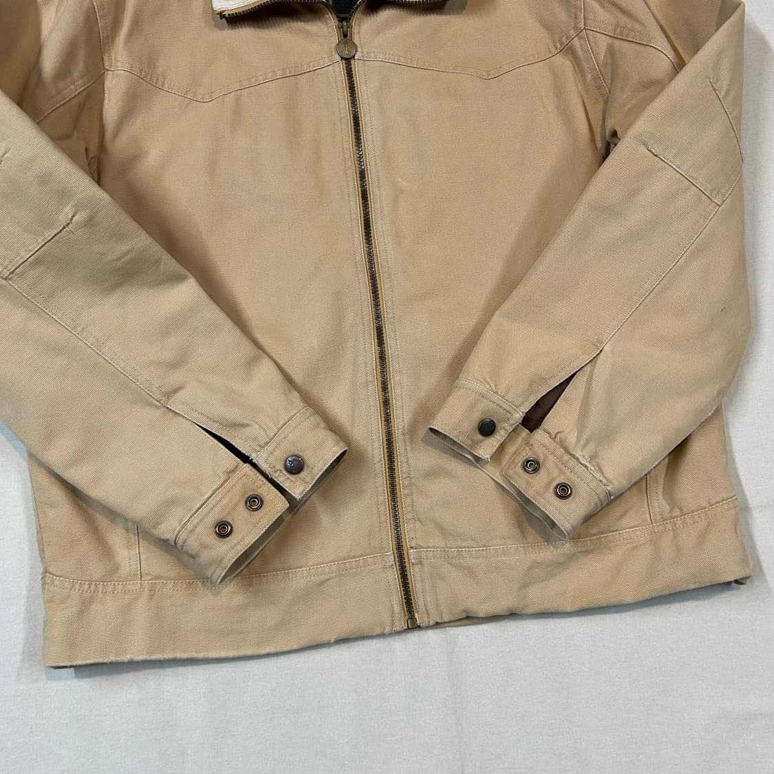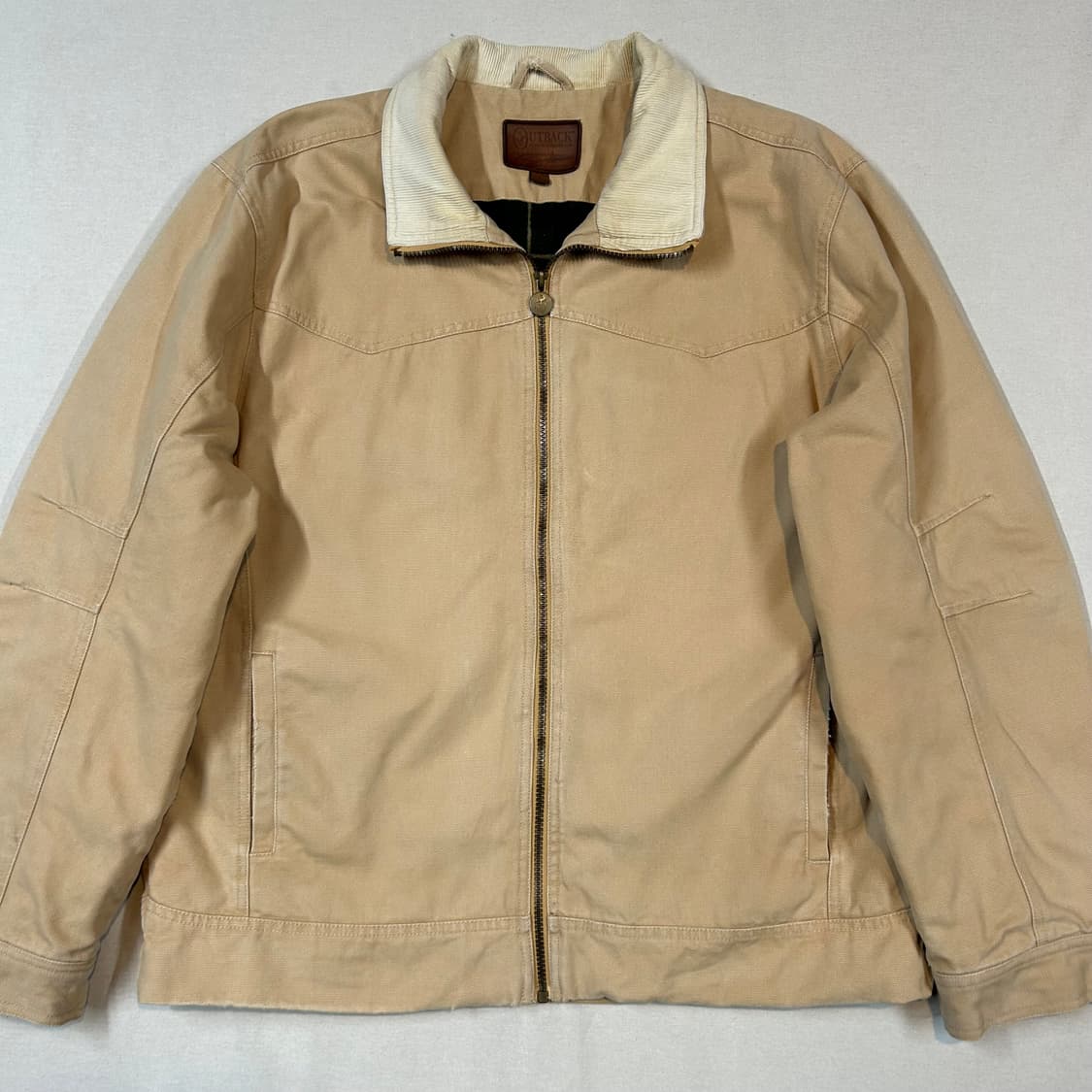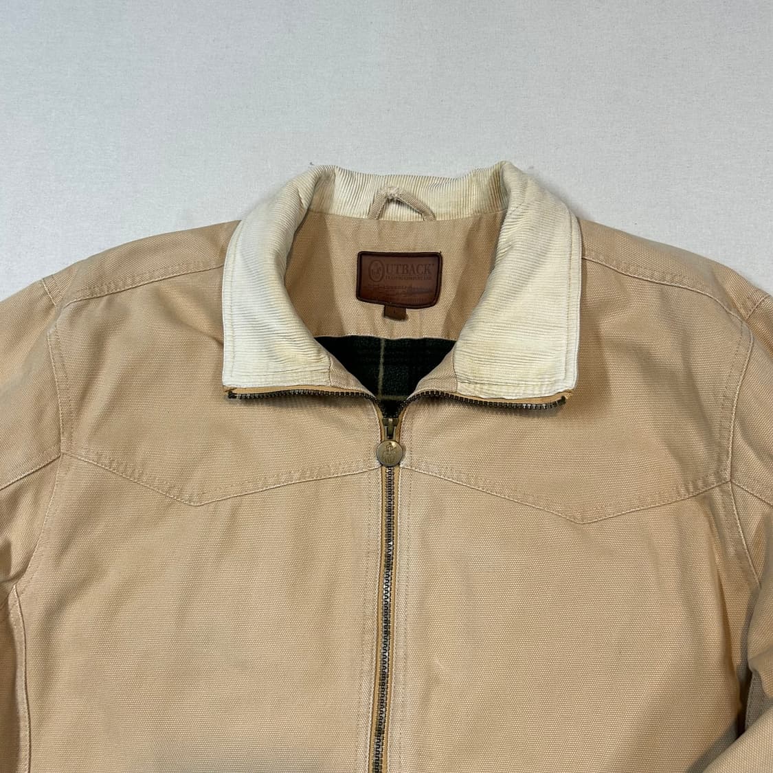 1983년 호주의 거친 환경에서 영감을 받아 시작된 USA 브랜드 아웃백 트레이딩 컴퍼니의 견고한 빈티지 자켓입니다. 튼튼한 베이지 캔버스 소재와 포근한 아이보리 코듀로이 칼라, 그리고 따뜻한 체크 플란넬 안감의 조화가 잘 어우러져 데일리 아우터로 활용도 좋을만한 아이템 🙇🏻♂️ - 착샷 모델은 평소 XL 105 사이즈를 주로 착용 합니다. 사이즈 L 어깨 54 가슴 64 총장 72 팔 65 컨디션 8/10 . . —————————————— ❗️두 제품 이상 구매시 무료배송 ❗️ ❗️사이즈미스, 단순 변심으로 인한 교환 및 환불이 불가합니다. ❗️실사이즈가 표기와 다를 수 있음으로 실측 확인 꼭 부탁 드립니다. ❗️보시는 제품은 중고 입니다. 예민하신분은 새 제품을 구매하시는걸 권장 드립니다.