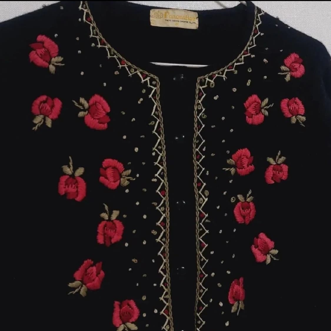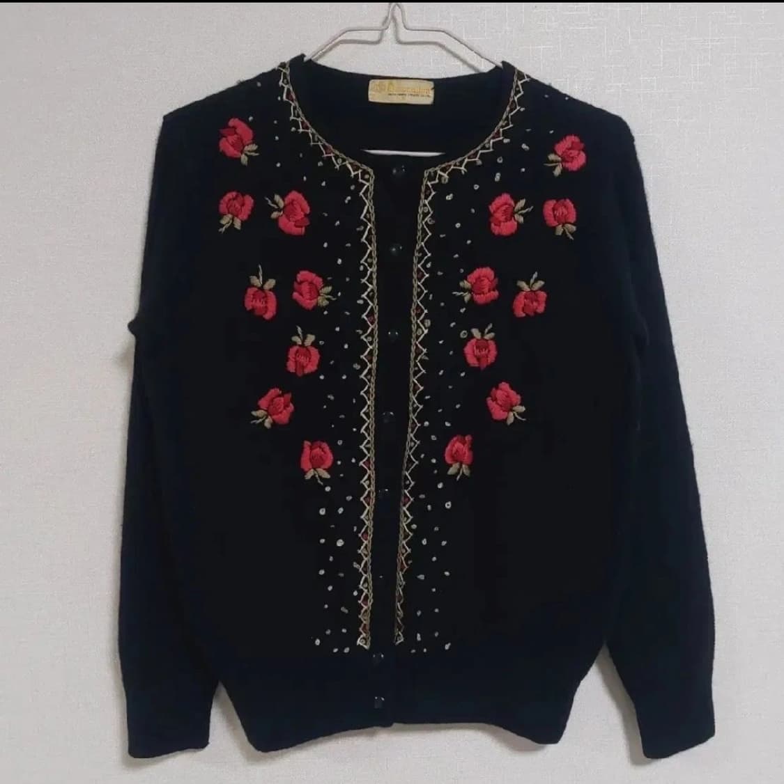 모리 장미 자수 울 가디건