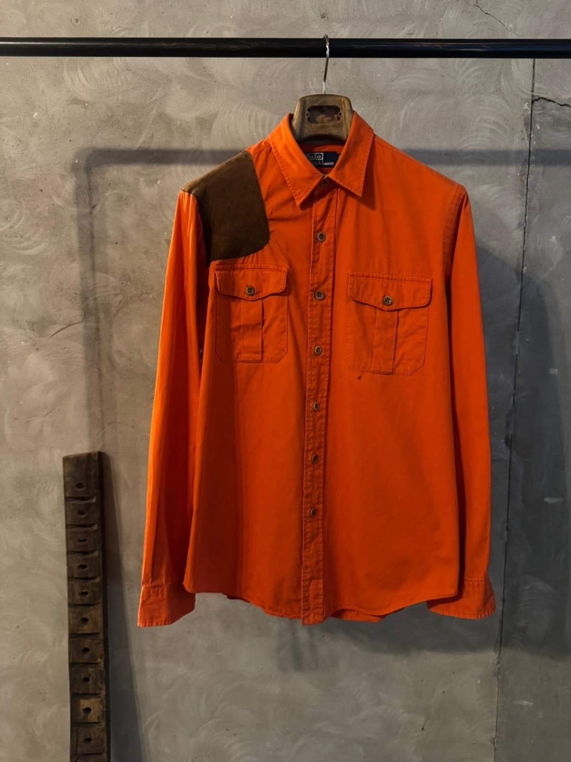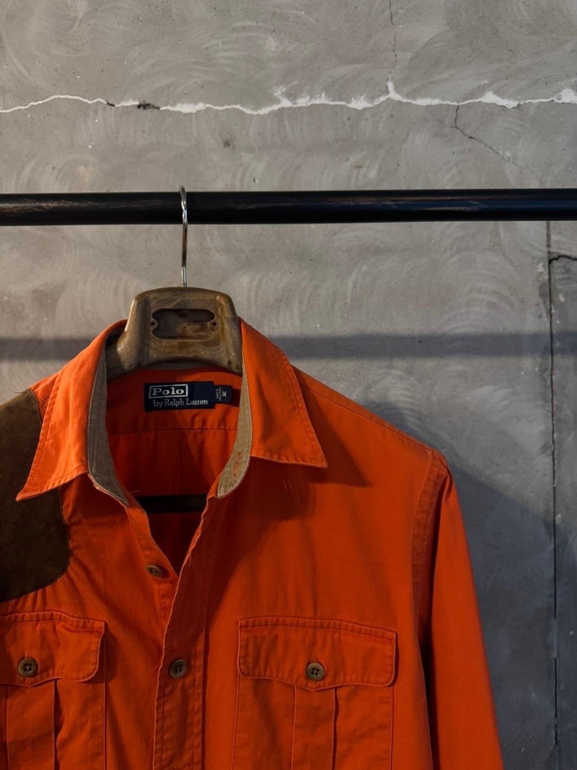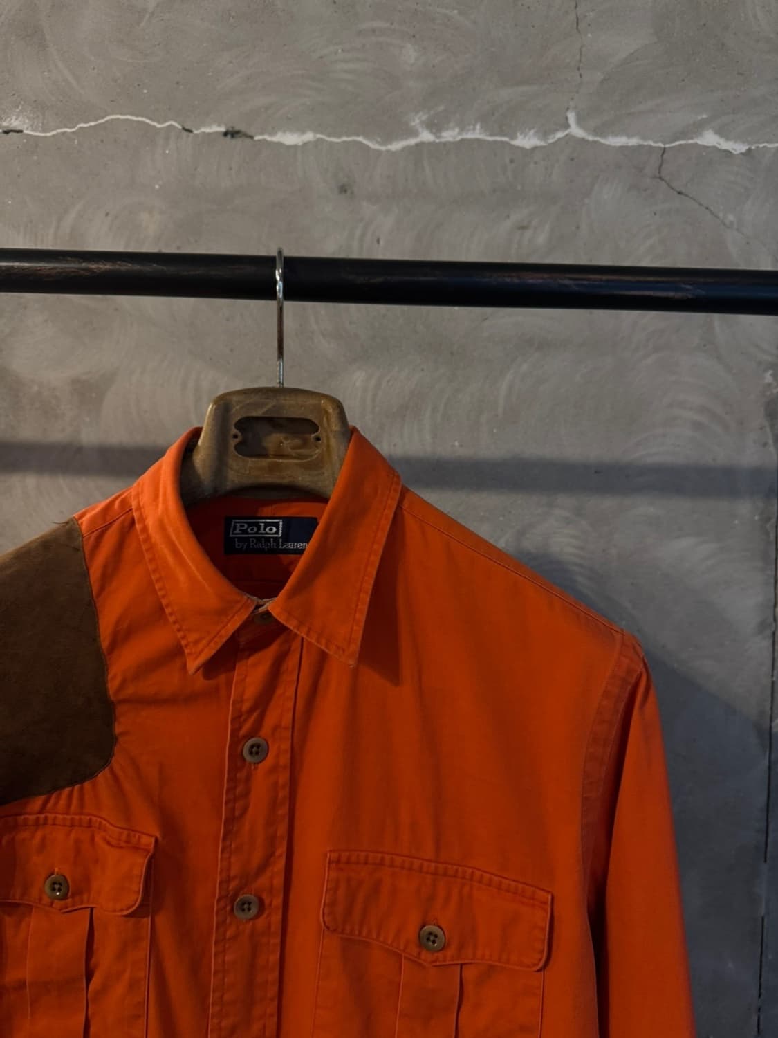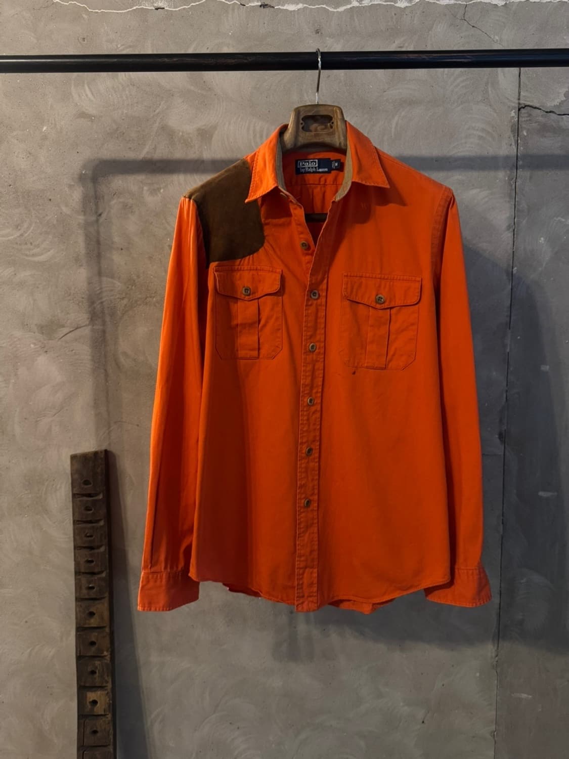 낮은 컬러톤으로 낸 오렌지빛색감의 컨버스패브릭만으로도 흡족한데 말이죠. 스웨이드레더로 한쪽 어깨를 감싸다니요. 랄프로렌 과거의 것이 그다지 부럽지 않아도 될 아웃도어셔츠입니다. 사이즈 100