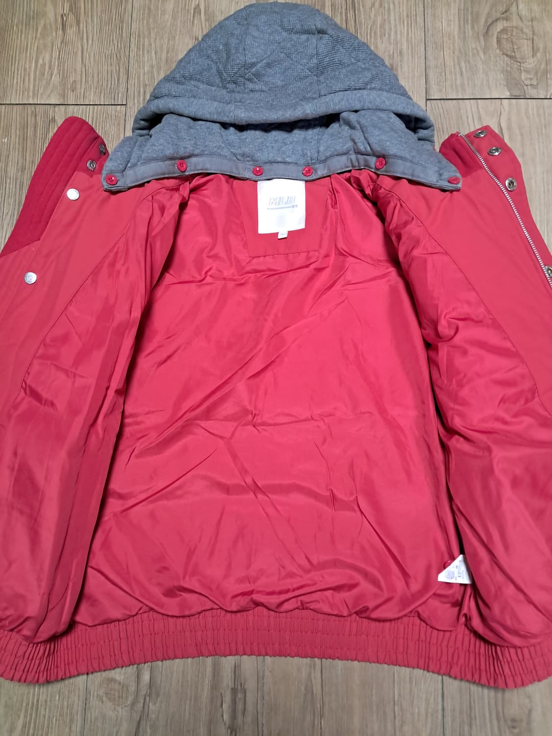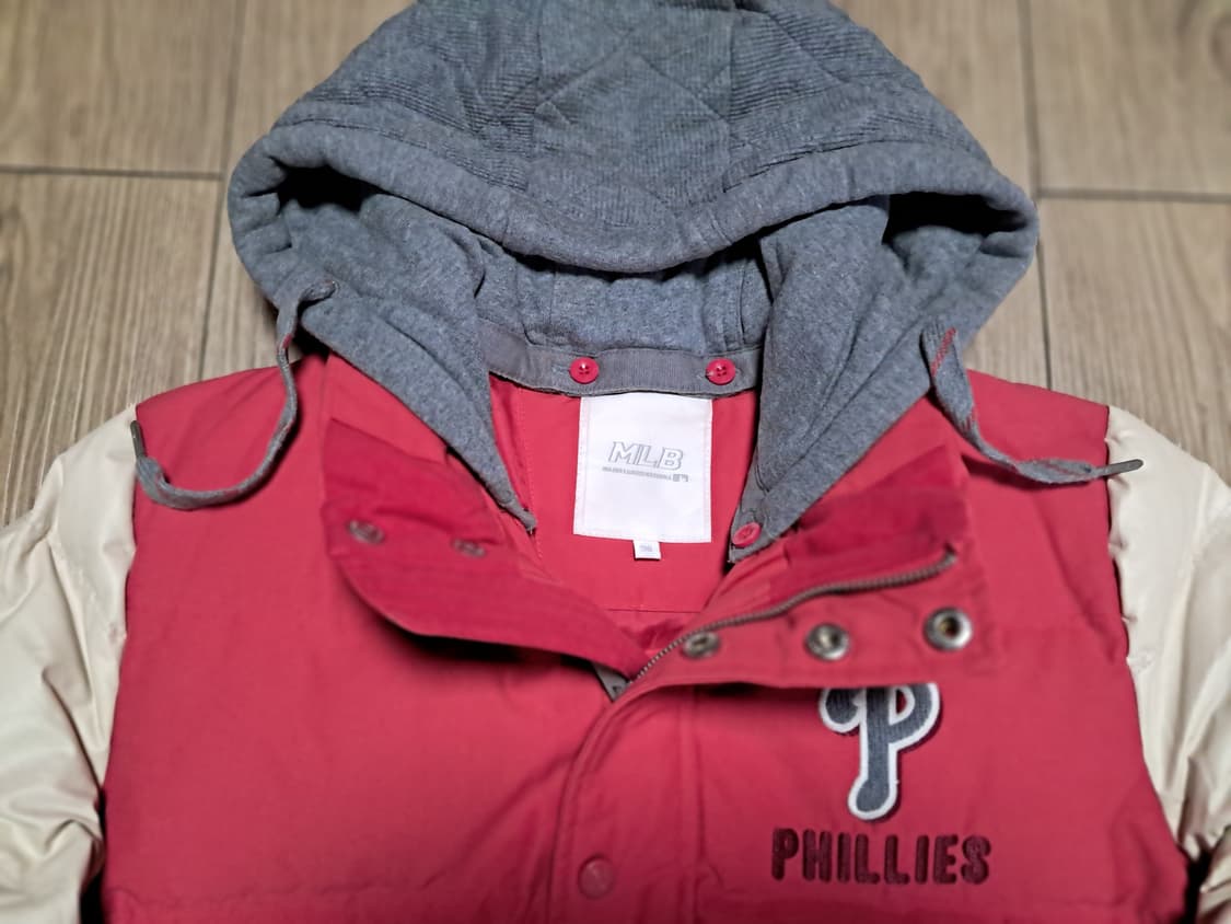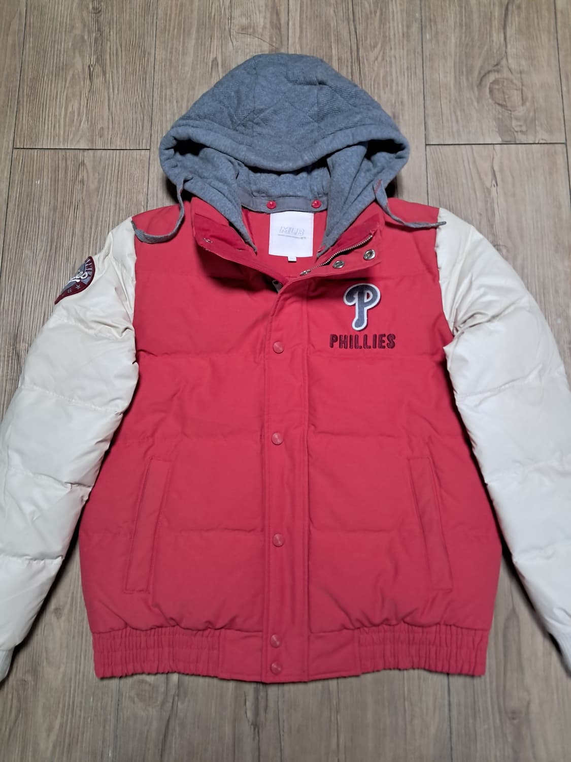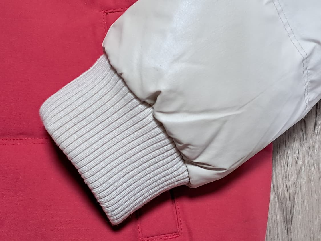상태 깨끗합니다 새옷수준 사이즈90 가슴55 총장64 어깨42 팔60 겉감1 폴리에스터 겉감2 폴리우레탄 안감 나일론 오리솜털80 깃털20 두툼하고 탄탄한 재질 지퍼와 똑딱이 이중잠금 포켓2 후드 탈부착 레드 베이지 그레이 자수로고
