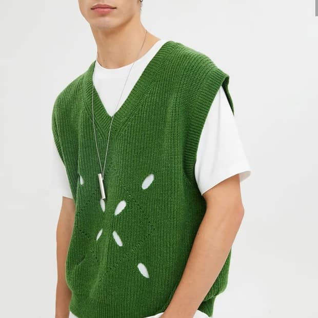 • [판매](M)문선 에센셜 아가일 홀 니트 베스트 - 포레스트