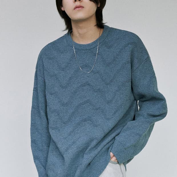 • [판매](L)바기 웨이브 오버핏 니트 - 데님블루