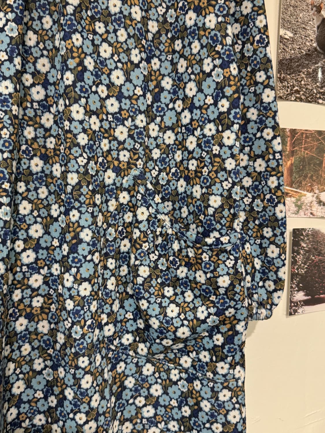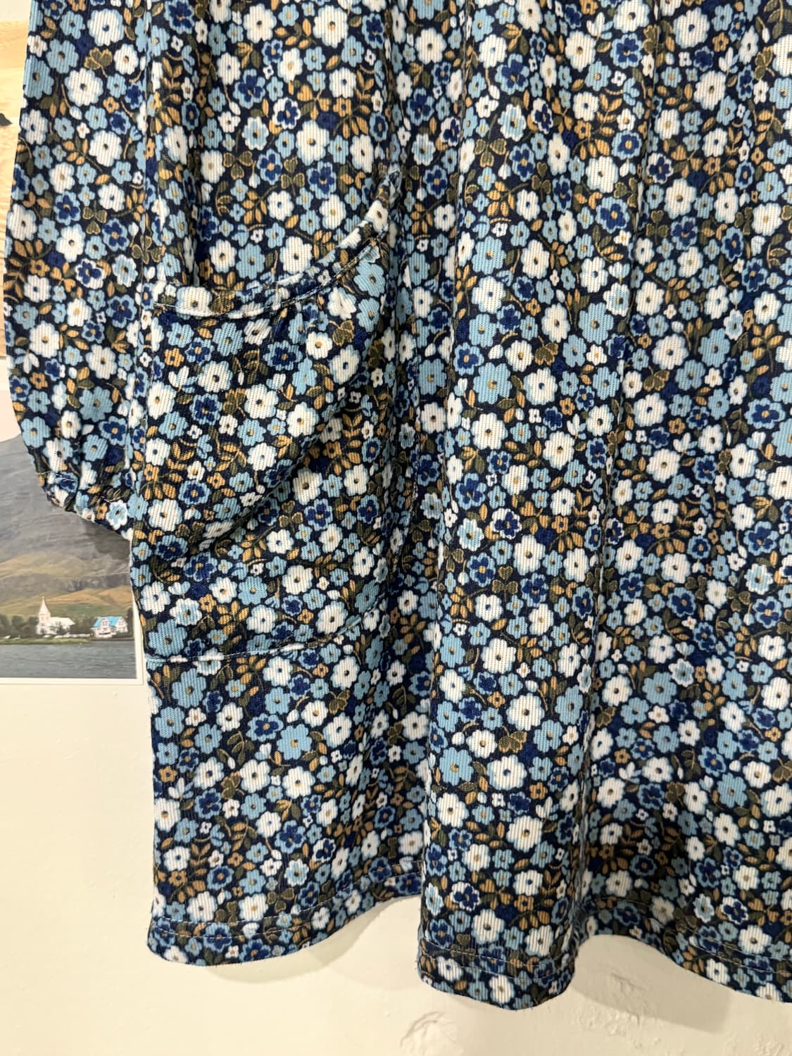 블루 플라워 포켓 원피스