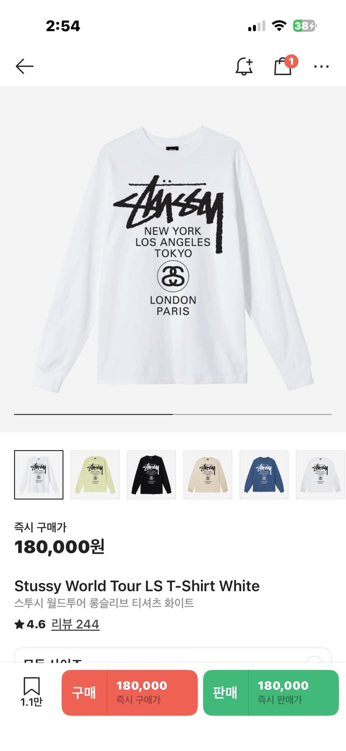 스투시 월드투어 롱슬리브 팝니다