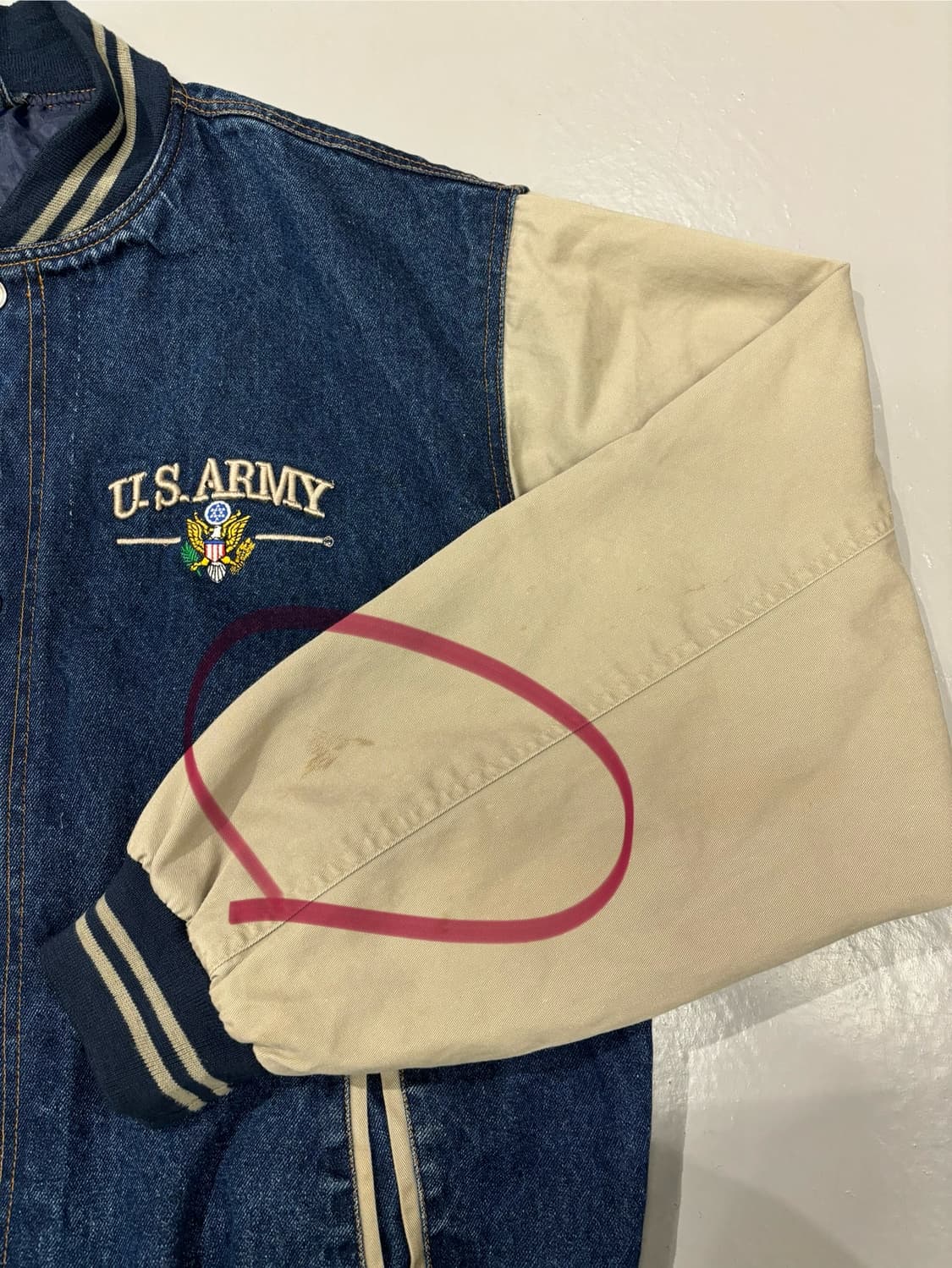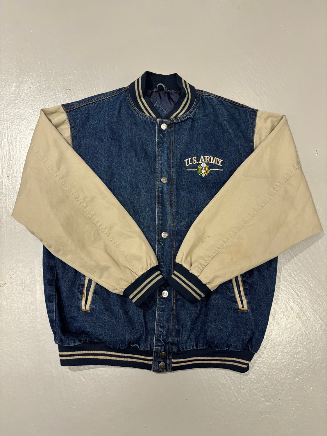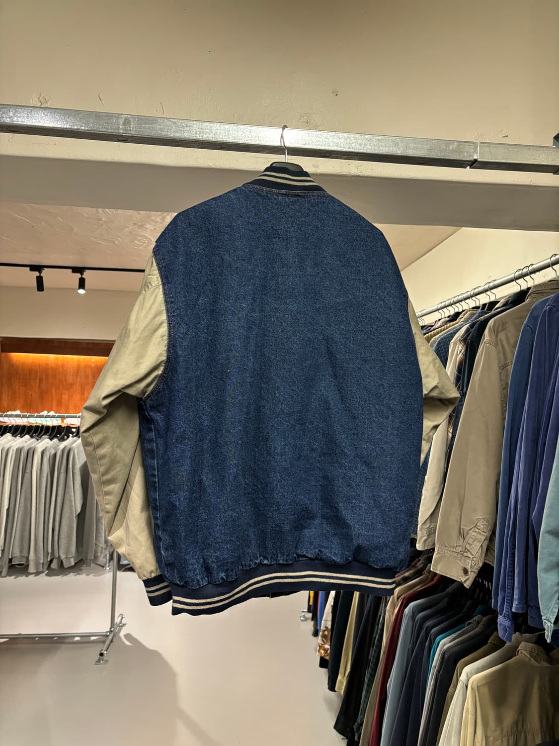 90’s 데님 베이스볼 자켓 size : XL 어깨 : 53cm 총장 : 67cm 가슴 : 66cm 팔길이 : 65cm price : 73,000 ₩ 🫧양쪽 소매 얼룩,우측 소매 수선자국, 사진 참고 바랍니다. -중고 상품 특성상 교환, 환불 어렵습니다. -신중한 구매 부탁드립니다.