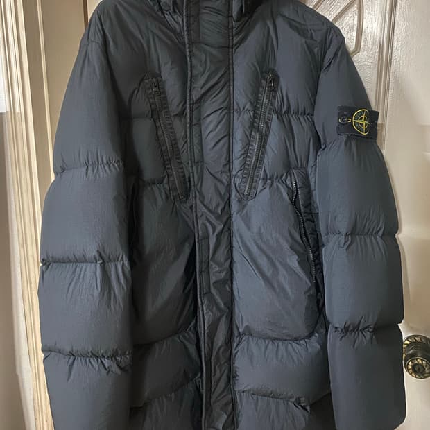 스톤 아일랜드 머스크 그린 색상 크링클랩스 후드 다운 자켓입니다. 24FW 시즌 제품입니다. 특유의 질감과 색감이 고급스러워요. 문의 없으시면 바로 안전결제해주시면 됩니다! 작년 말에 크림에서 사고 여행다녀오니 패딩 입을 날씨가 아니라서 새상품입니다. 따로 커버나 백은 없고 구성품은 옷걸이만 있습니다. 사이즈는 xl이고 크림 사진 색상은 절대 아니고 일반적인 카키색입니다. 실 착용 사진 화장실에서 찍고 올렸습니다. 아직 바깥 바람을 맡은 적이 없는 친구입니다. 제품 상태, 택, 정품인증 모두 편하게 문의해주세요. 네고도 상식 선에서 환영합니다. 현재 145만원 올라와있고 최근 거래가 135만원입니다.