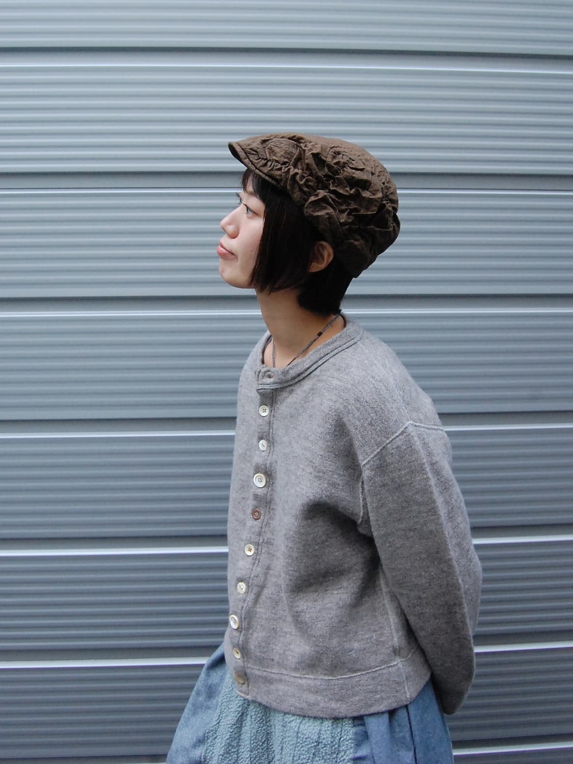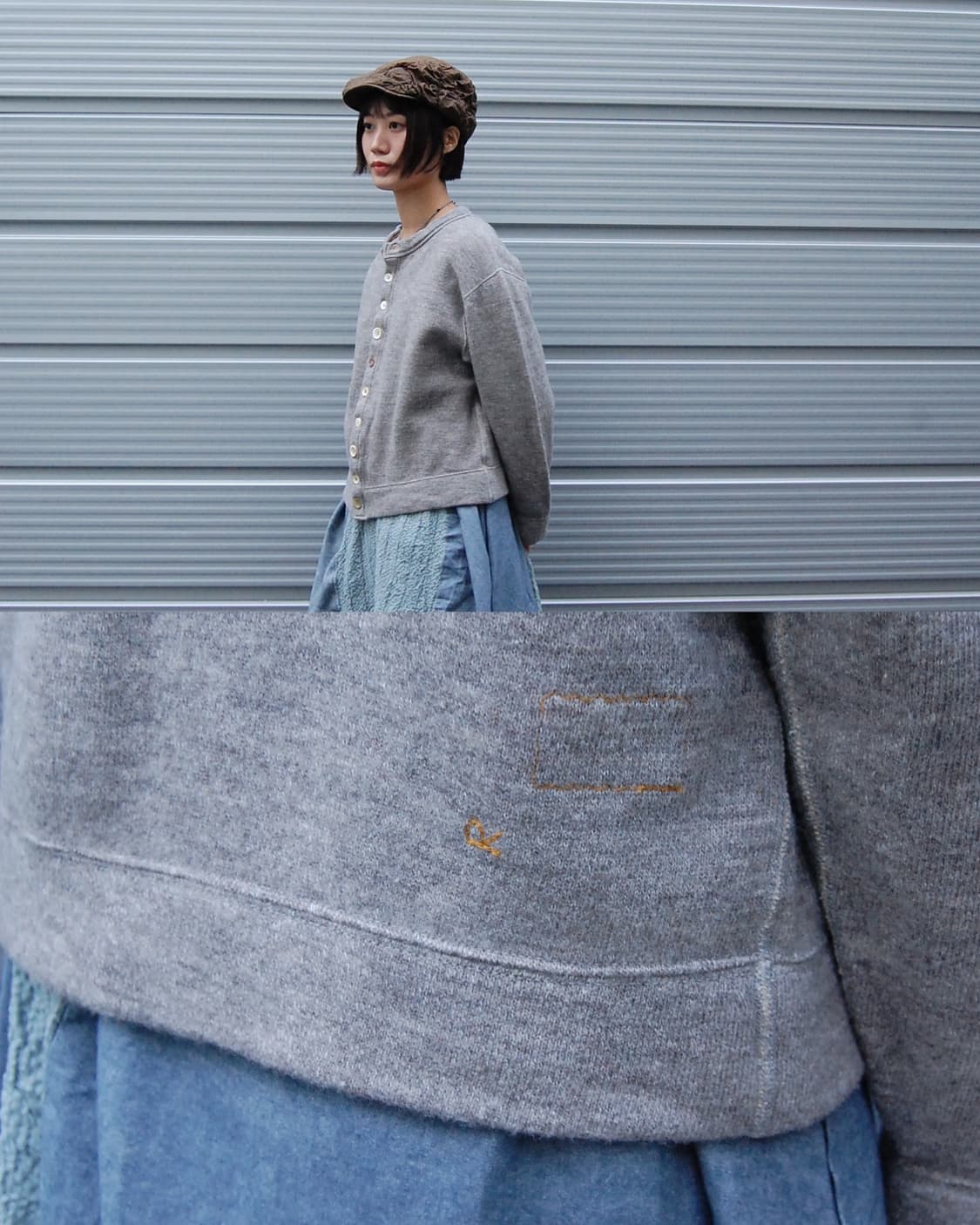 레미 릴리프 재팬 멜란지 그레이 리넨 가공 카디건