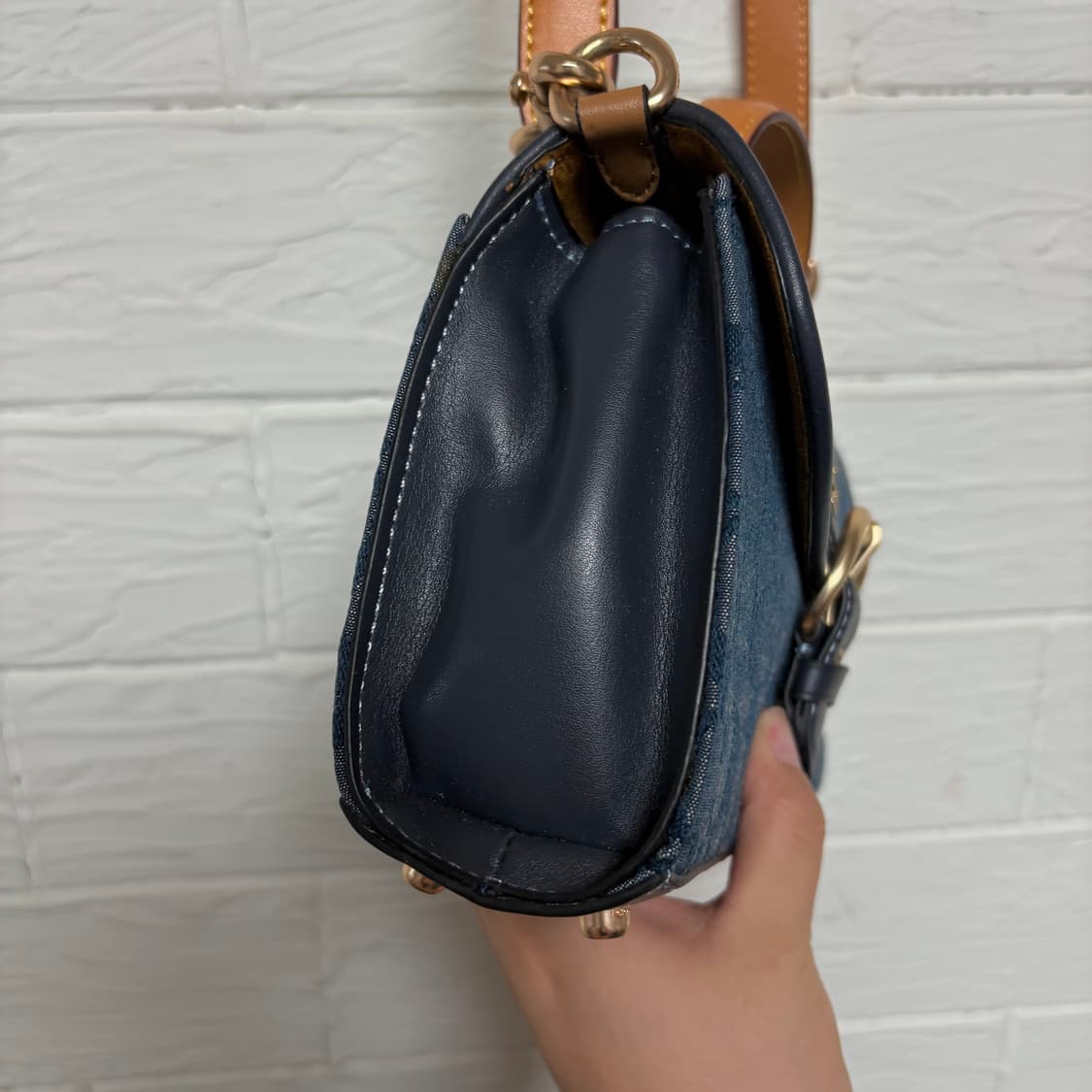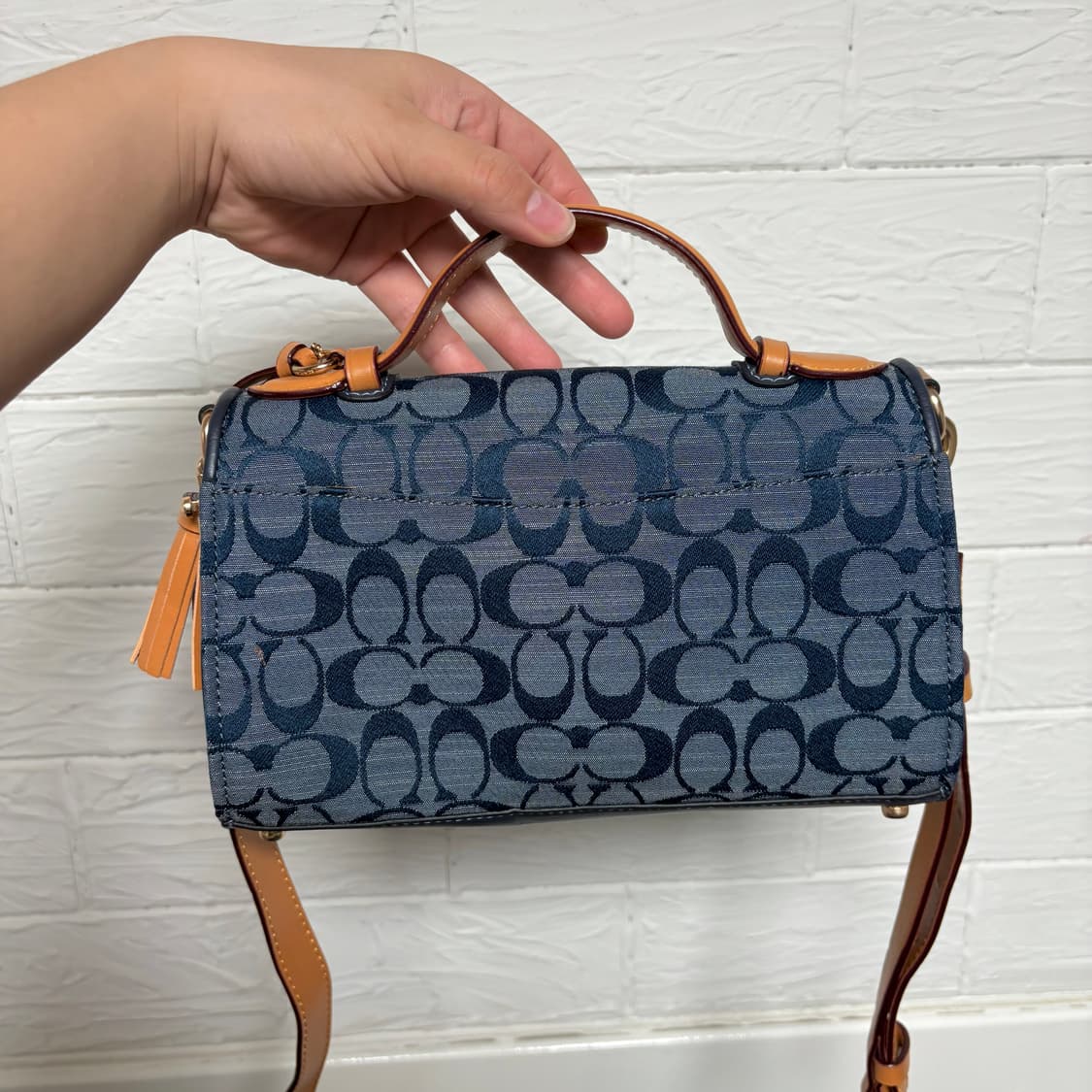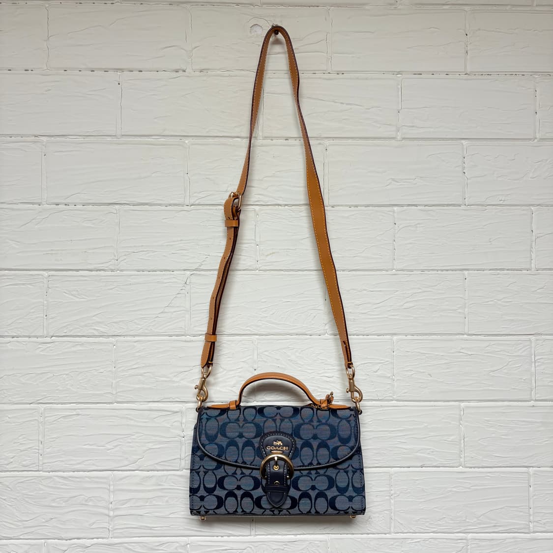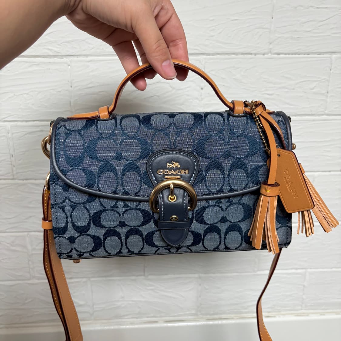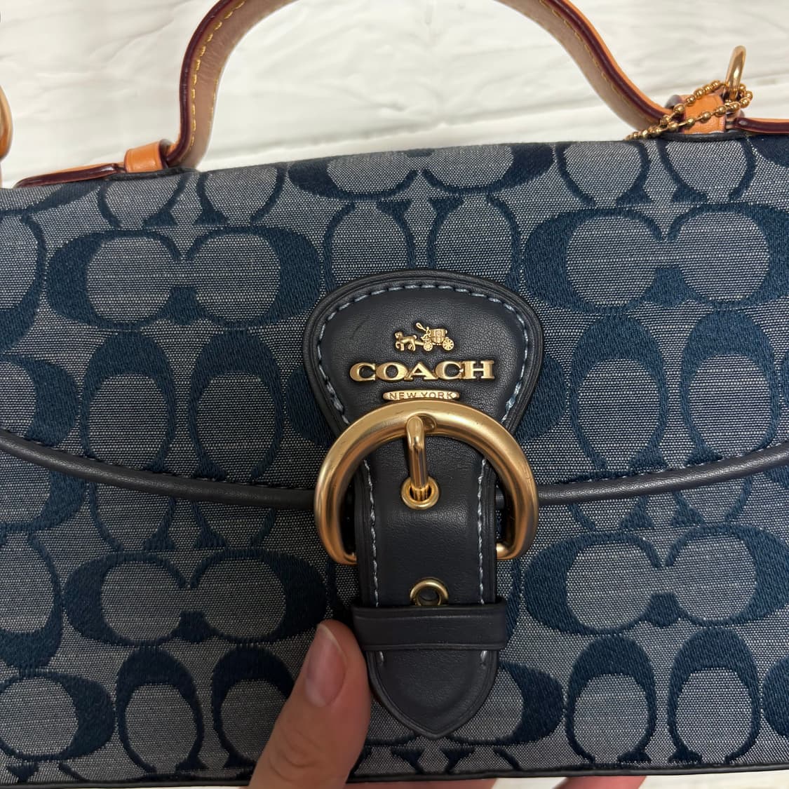 코치 클레오 탑핸들 샴브레이 소가죽 크로스백