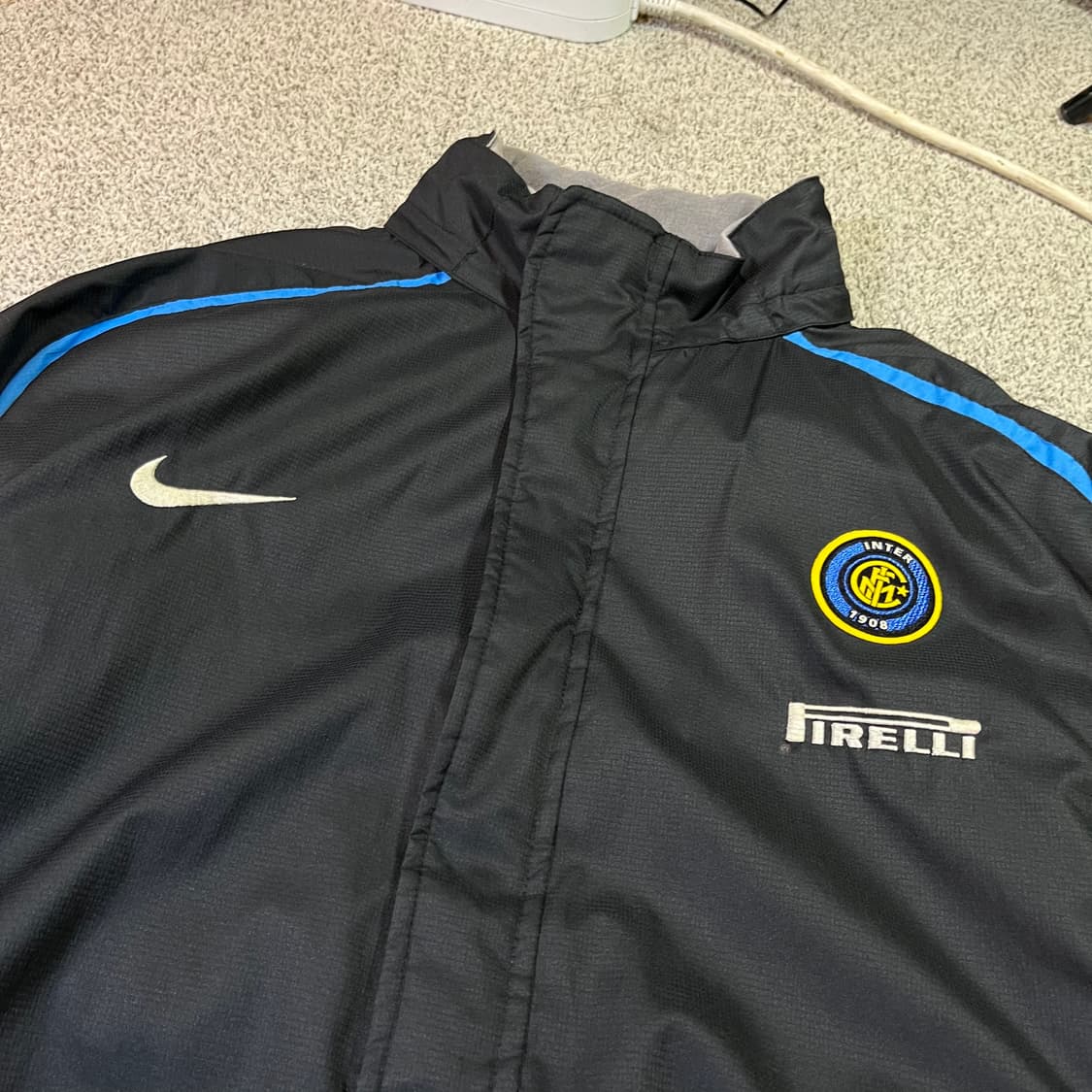 • 나이키 인터밀란 바람막이 점퍼 NO.#251024 Size : 실측XL ( 총장 75 가슴 62 어깨 나그랑 ) Condition : 8.8/10 Price : 60,000 DM - 구매 문의 #뽀글이구매가능