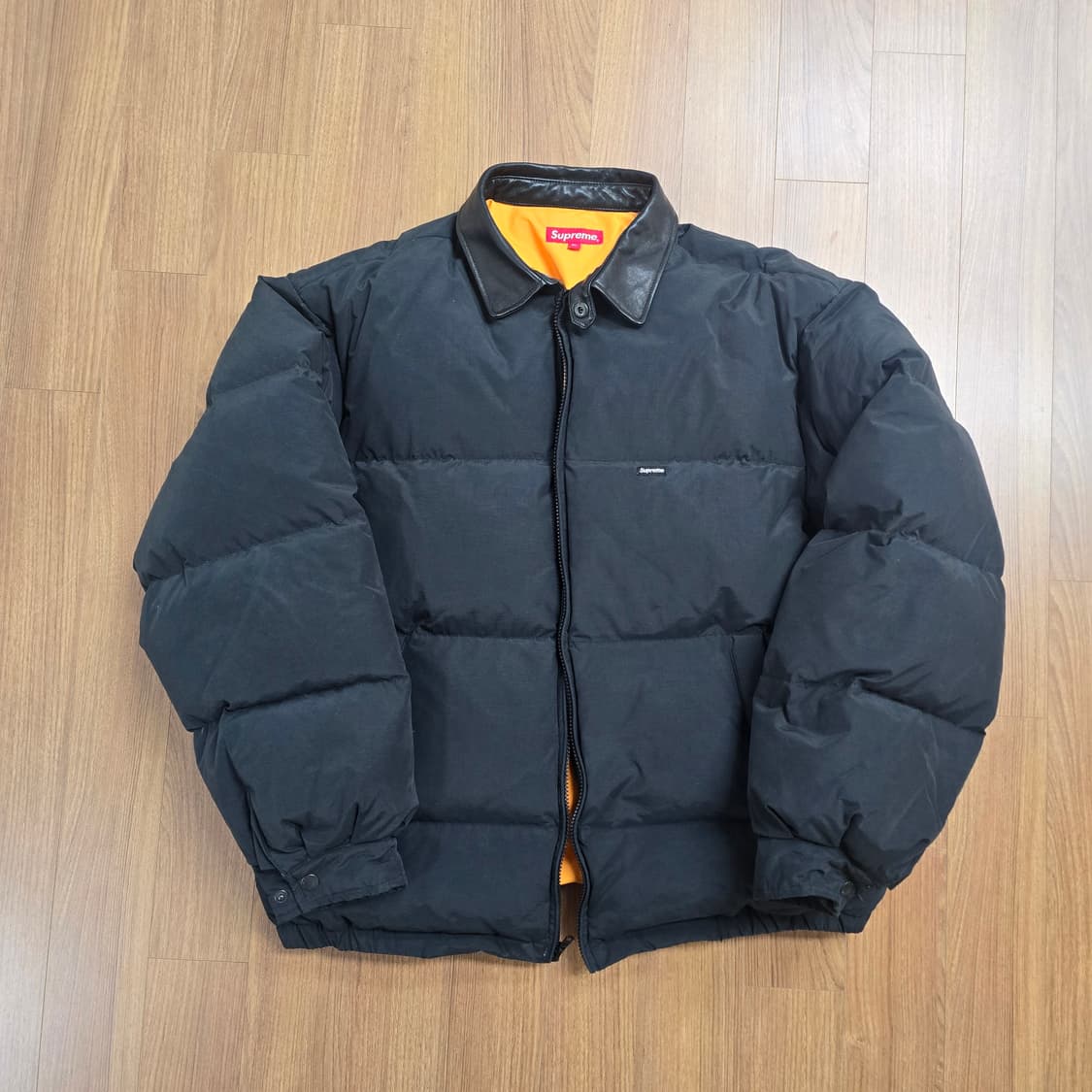 (XL) 슈프림 레더 칼라 퍼피 푸퍼 패딩 자켓 블랙