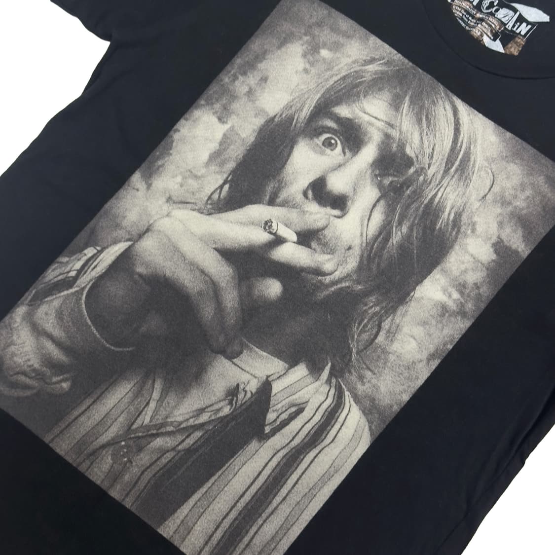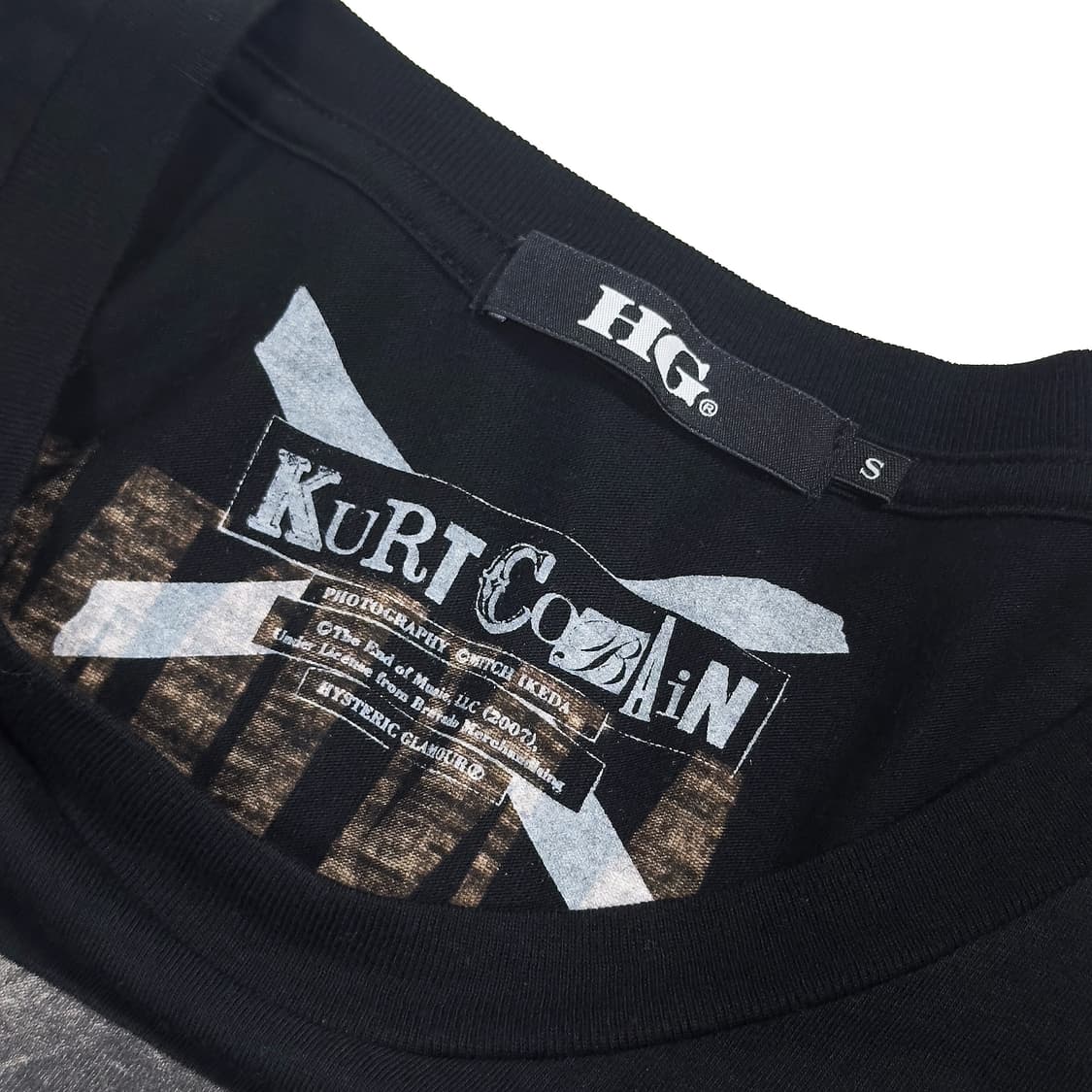 Hysteric Glamour Kurt Cobain Graphic T-Shirt - Size: 어깨 약 39.5cm 총장 약 67.5cm 가슴 약 41cm 소매 약 20.5cm ( S 사이즈 ) - Condition: 9/10 - Color: Black - Price: 10.9 • 전면에 밴드 Nirvana의 보컬 커트 코베인의 모습이 프린팅되어 있는 티셔츠입니다. • 후면에는 밴드의 노래 ‘Sliver’의 가사인 “GRANDMA TAKE ME HOME” 이 적혀있습니다. • 히스테릭 글래머는 1984년 일본 하라주쿠에서 키타무라 노부히코가 창립하여 시작된 스트리트웨어 브랜드로, 반항적인 스트리트 문화와 서구의 반문화를 결합하여 독특한 미학을 창조했습니다. 히스테릭 글래머는 단순한 의류 브랜드를 넘어서, 대중문화와 예술을 아우르는 문화적 아이콘으로 자리매김하고자 했습니다. • 중고품 특성상 교환 및 환불이 불가합니다. 제품 관련하여 문