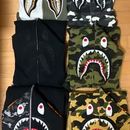 베이프 샤크후드 올리브 색상입니다 평소에 샤크후드는 모두 xl-l를 입는데 릴랙스드핏만 사이즈가 크게 나와 M을 구매했습니다. L 사이즈로 생각하시면 됩니다. 세네번 정도 입고 나갔고, 그마저도 깨끗하게 입고 보관해 세탁한 적이 없어 제품이 망가지지 않았습니다. 군대 가기 전에 즐겁게 수집했던 샤크후드들을 모두 분양보내고 있습니다. 궁금하신 점 있으시면 연락주세요