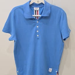 [정품] 톰브라운 블루 폴로 카라티에요. 살쪄서 머슬핏이 된 상황이라 판매해요. 사이즈 1이고 실측은 아래 참고해주세요. 어깨 43 가슴 50 총장 68 미세 얼룩 2곳 있는데 사진에 안 보일 정도에요. 그거 감안에서 저렴하게 올려요.