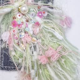 -Handmade -Fabric, Denim, vintage buttons, tassel, fake pearl, metal, spangles
