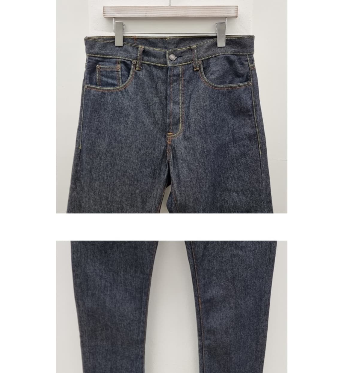 • [정품/36] 에비수 진청 워싱 옐로우 빅로고 데미지 데님 청바지