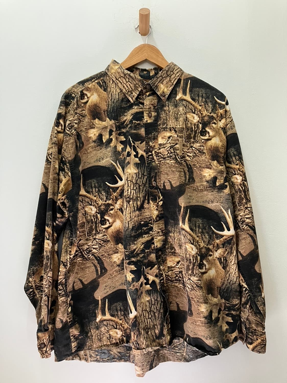 상품명 / (XL)리얼트리 셔츠 Price / 45,000(배송비 기본 : 3,000원 / 제주,도서 산간 : 6,000원) Size / 어깨 56, 가슴 69, 소매 63, 총장 77 Condition / 9 빈티지 특성상 교환,환불이 불가 합니다. 신중한 구매 부탁드립니다