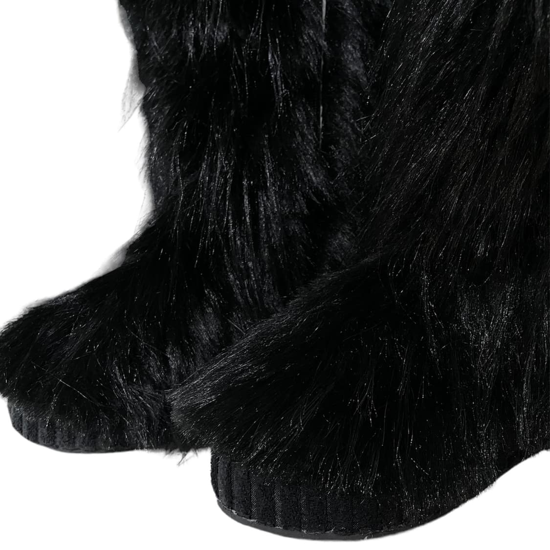 size 245 굽 4cm - 블랙 털 부츠 - 옆 부분 지퍼 있음 - 굽 살짝 있음 - 새 상품